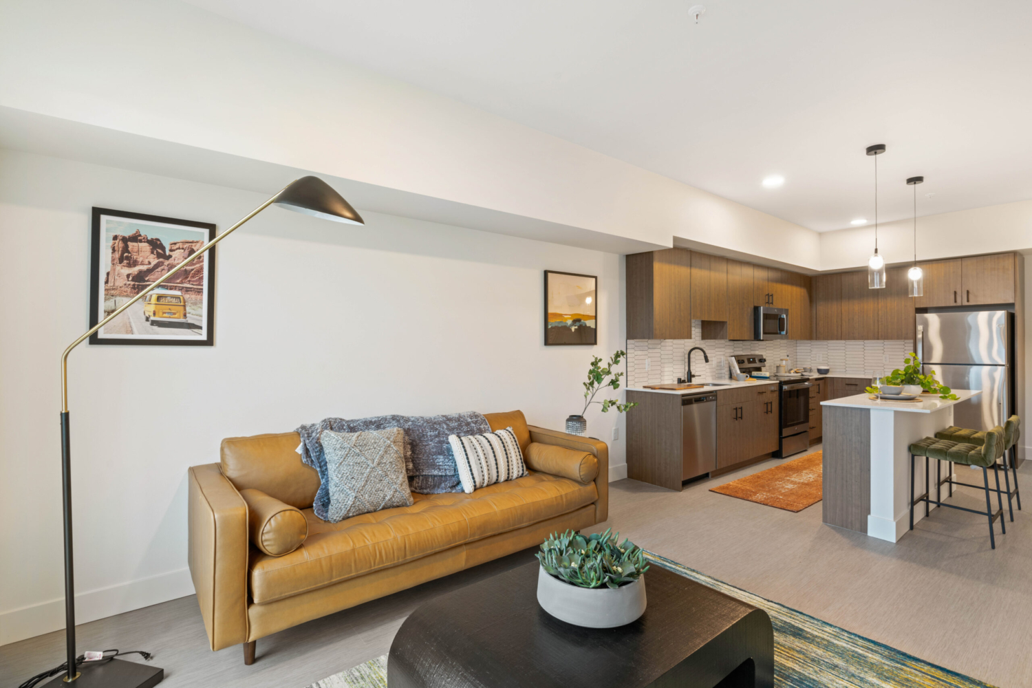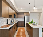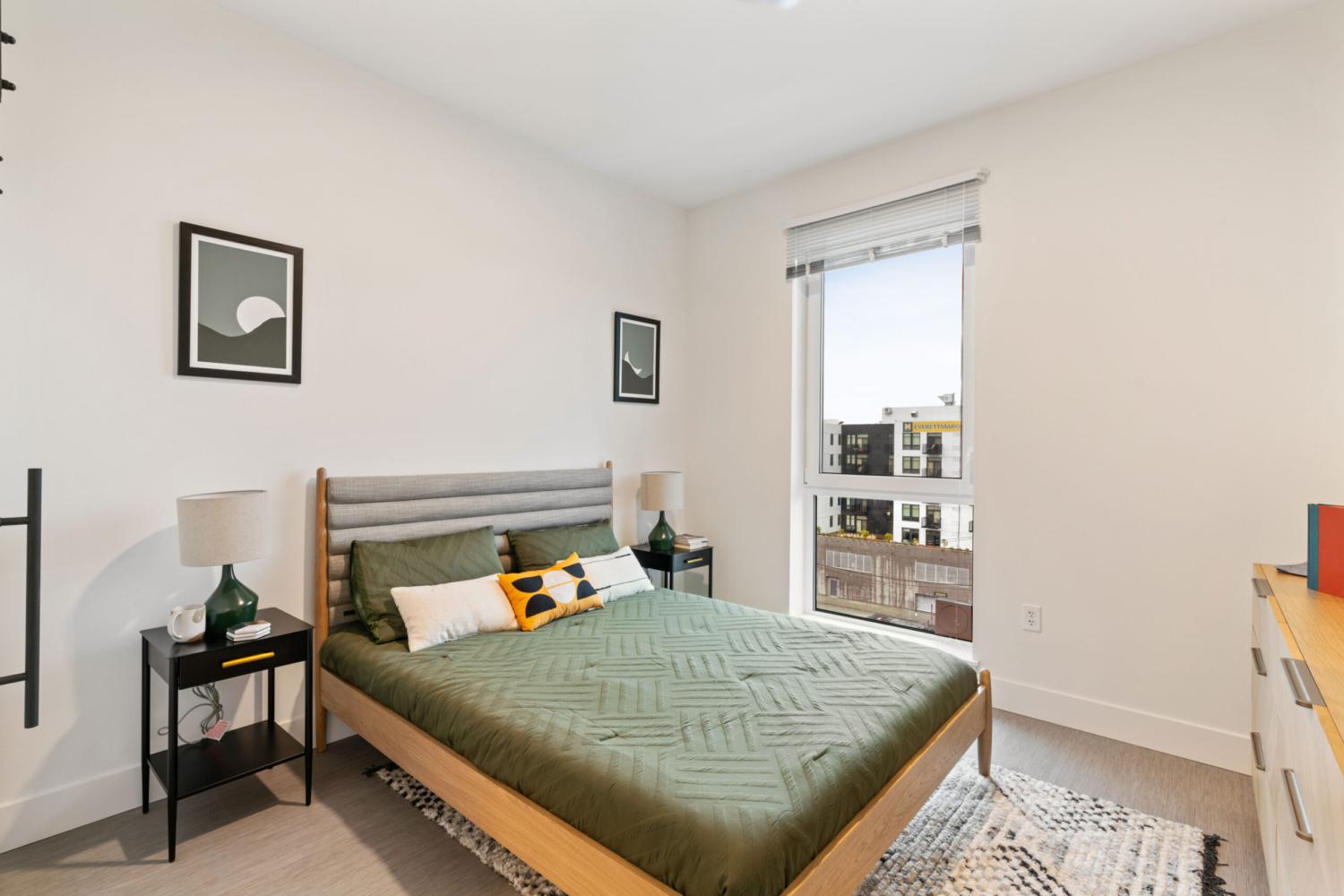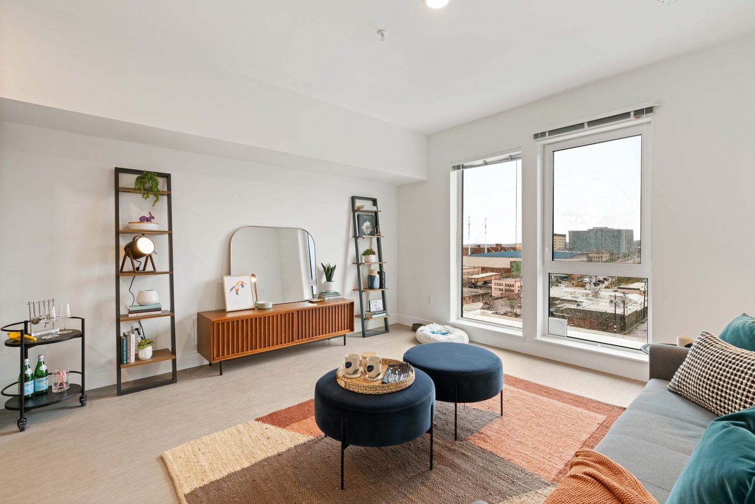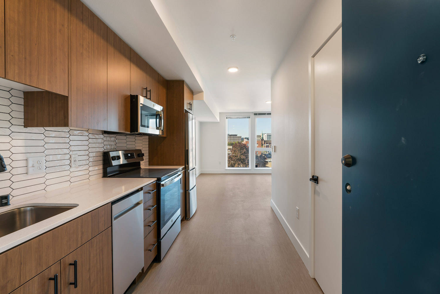 First, take a tour of our stylish and modern apartment interiors, complete with designer light fixtures, soft-close cabinets, stainless steel appliances, quartz countertops, modern tile backsplashes, and matte black accents. You’ll also appreciate the convenience of triple pane tilt-in windows, integrated air conditioning, and luxury vinyl wood-like flooring. And, with a large washer and dryer included in every unit, doing laundry has never been easier.
